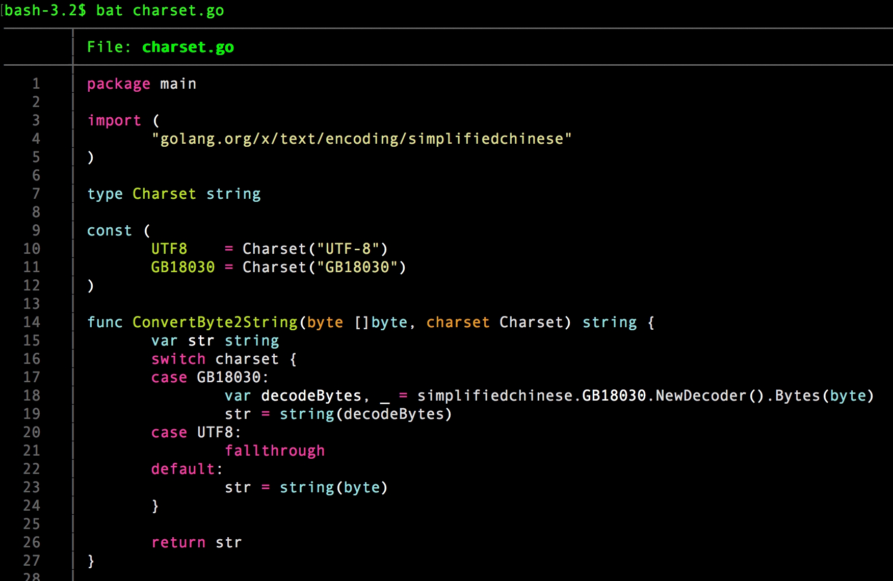 cat 被用于打印文件内容。ccat 工具还提供像语法高亮显示这样的功能。在此基础之上,bat 还支持 分页, 行号和 git 集成。同时允许在输出中搜索 (当输出长于屏幕高度时) 。更多信息:https://github.com/sharkdp/bat