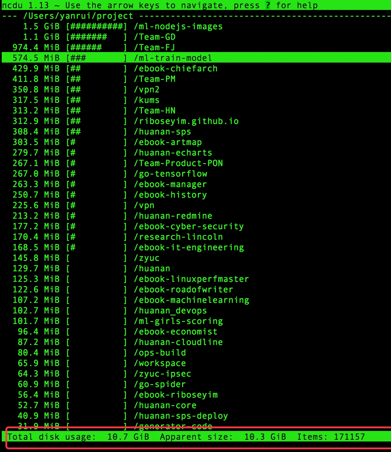 了解磁盘空间占用情况是一项非常重要的工作。常用的命令是 du -sh (-sh 表示摘要、便于人工阅读), 但我们经常需要挖掘目录的空间占用。ncdu 是一个替代选择(完全基于 C 语言编写,MIT 许可证)。ncdu 提供了一个交互式界面, 支持快速扫描哪些文件夹或文件占用空间, 并且导航非常方便。更多信息:https://dev.yorhel.nl/ncdu