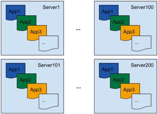 分布式环境中存在大量进程需要度量,包括在同一服务器上运行着多个 Spark 应用、多服务器上运行的 Spark 应用有大量的进程 (例如数以千计的执行者 executors ) , 如 图1 所示: