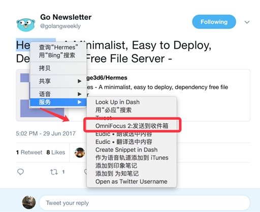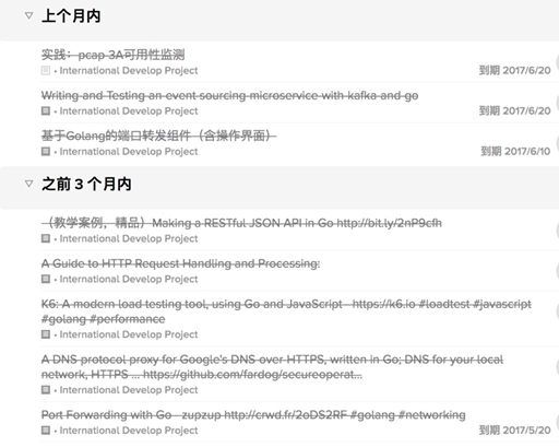 一般过程:“搜集-处理-整理-行动-检查”。举例:将Twitter上发现的感兴趣内容发送到OmniFocus收件箱,整理分类并 设置一个要求完成时间 (最关键的要素,没有完成时间的计划都是耍流氓),定期检查待办事项完成情况,再开启下一轮调整优化。