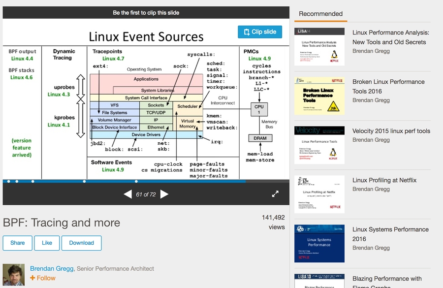 例如,我对系统性能优化方面受益最多的来自于 Brendan Gregg,他维护的个人博客发布了大量的原创内容,出版了包括《性能之巅》在内的一大批书籍,囊括了性能问题领域的技术、工具、方法论等方方面面,并且持续保持着活跃的更新频率。又如kanban这一方法论,我很多年前就已经知道,但是一直不甚了了、未能实践,但是看过 Marcus Hammarberg 的视频《Kanban in Action》之后,一下子就有触类旁通的感觉,很快就能娴熟应用。